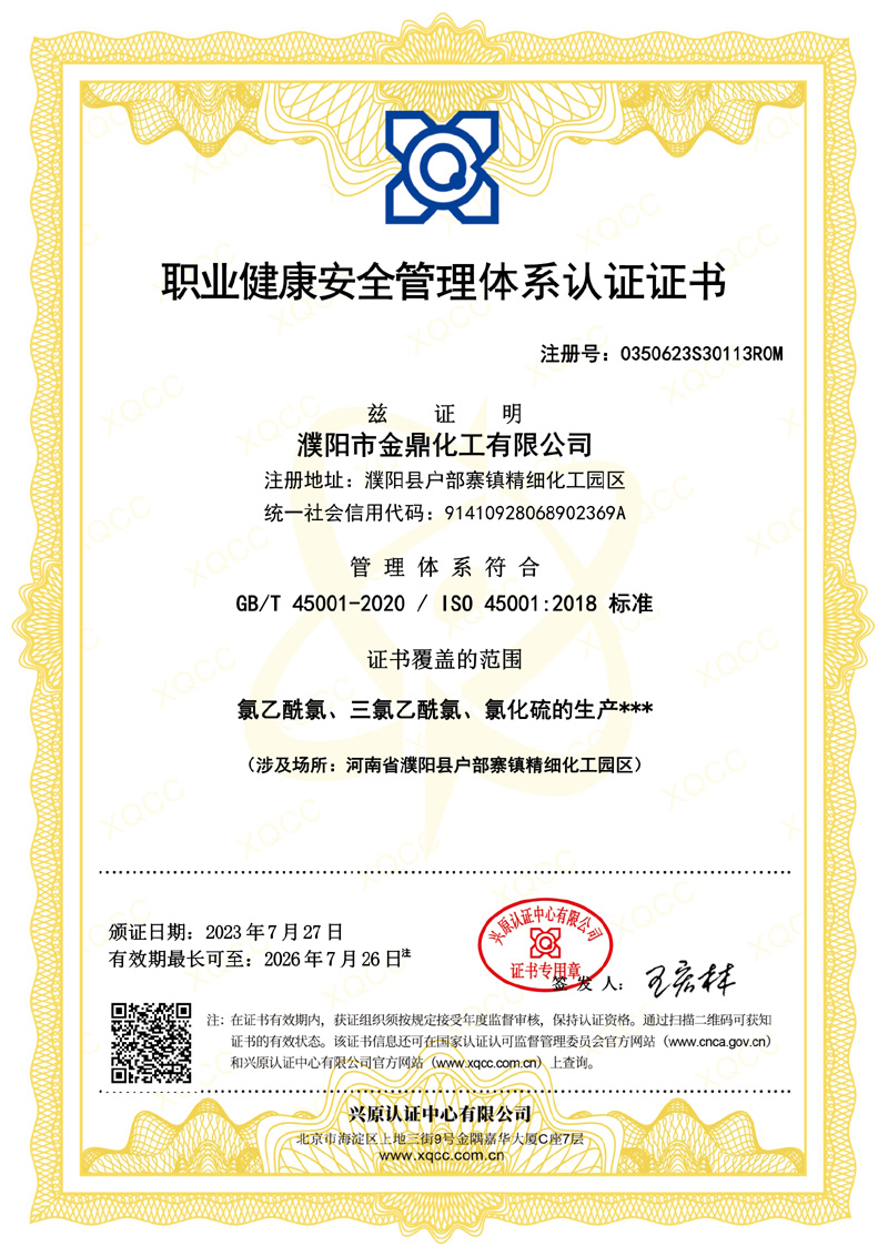 濮陽市金鼎化工有限公司所屬其他基礎化學原料制造,公司主要產品規模為:10000噸/年氯乙酰氯、10000噸/年氯乙酸、5000噸/年氯化硫、6000噸/年氯甲醚、5000噸/年三氯乙酰氯、7000噸/年氯乙酸甲酯、3000噸/年二氯乙酸甲酯,副產鹽酸13000噸/年。產品廣泛應用于醫藥、農藥、染料、膠劑等行業。